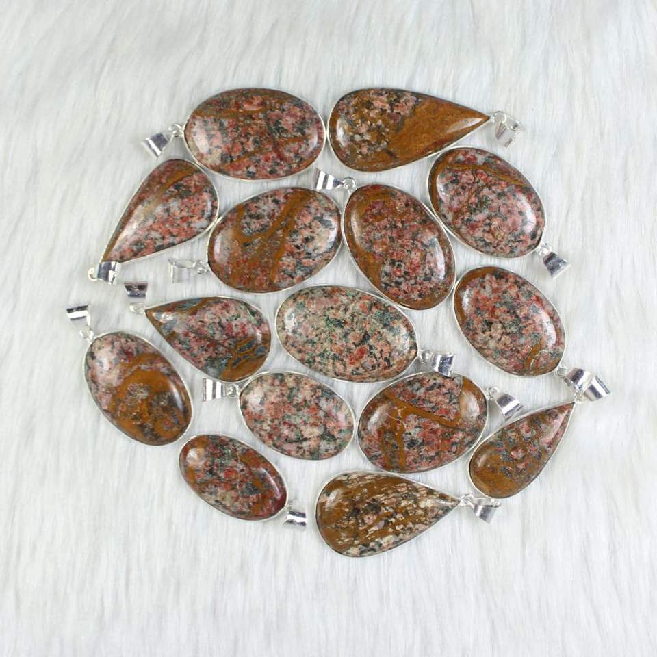 ชื่อผลิตภัณฑ์:จี้ชุบเงินแจสเปอร์ unakite จากธรรมชาติ