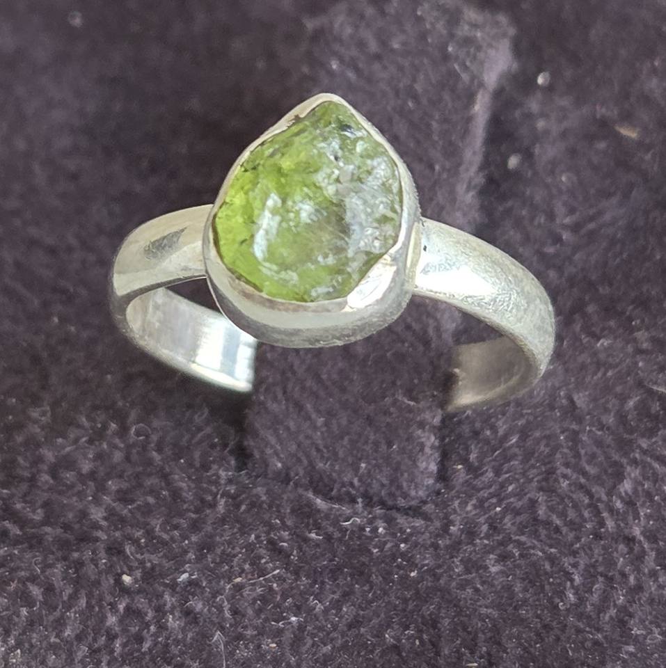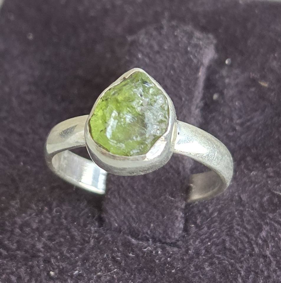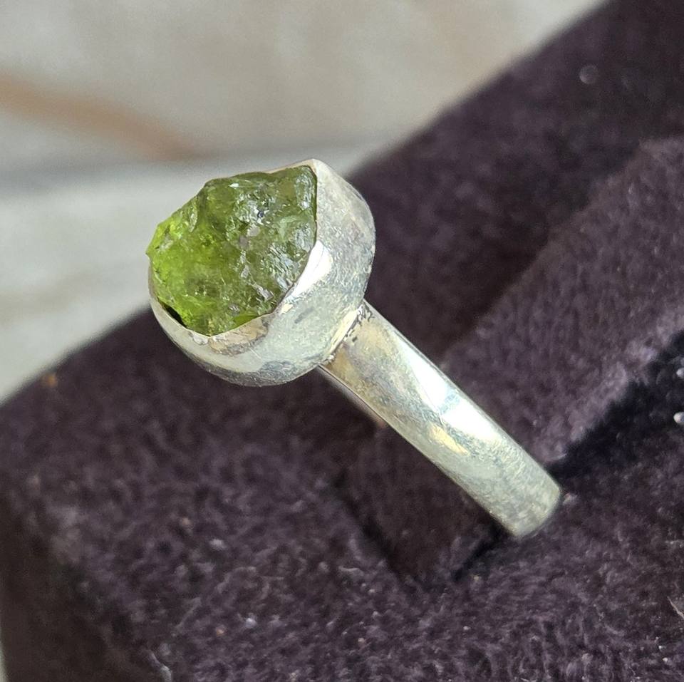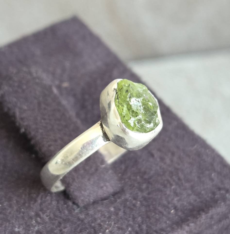 ชุดแหวนแฟชั่นสีเงินสเตอร์ลิงสไตล์โบฮีเมียนปรับขนาดได้ทำด้วยมืออัญมณี prehnite แบบไม่สม่ำเสมอสำหรับวันครบรอบแต่งงาน