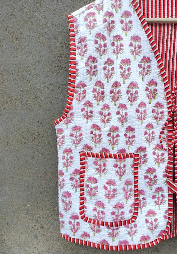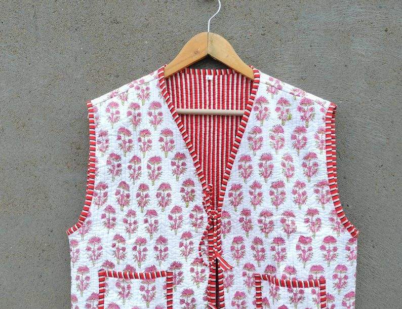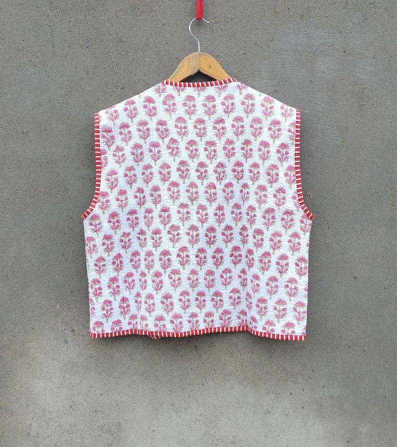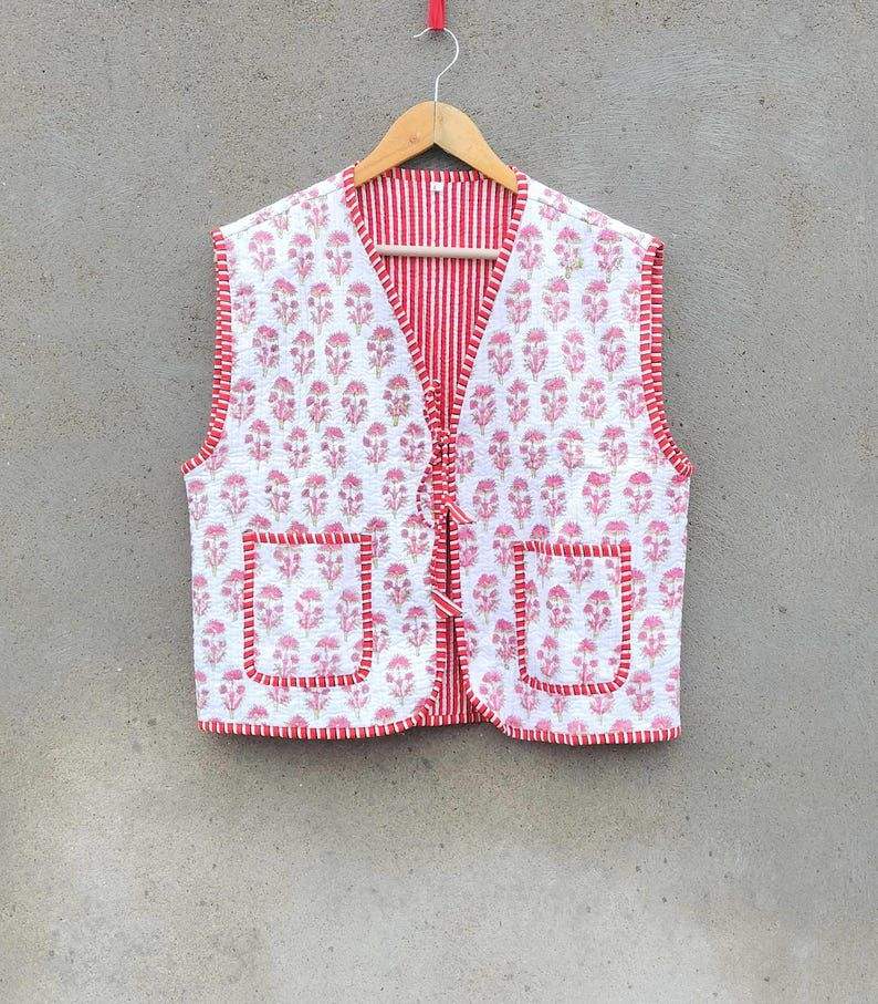 เสื้อแจ็คเก็ตแบบสั้นไม่มีแขนสไตล์โบฮีเมียนสำหรับทุกเพศ ผ้าฝ้ายทอมือลายคันธา งานปะติดปะต่อ ลายพิมพ์สไตล์อินเดีย ใส่สบายๆ สำหรับฤดูหนาว