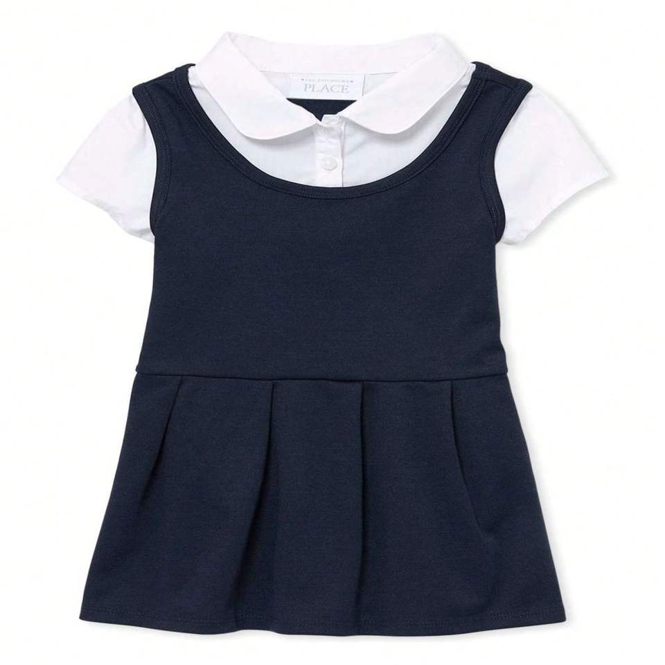 Unisex Button-Up Cotton School Uniform Skirt for Children Short Sleeve Breathable Customized Color