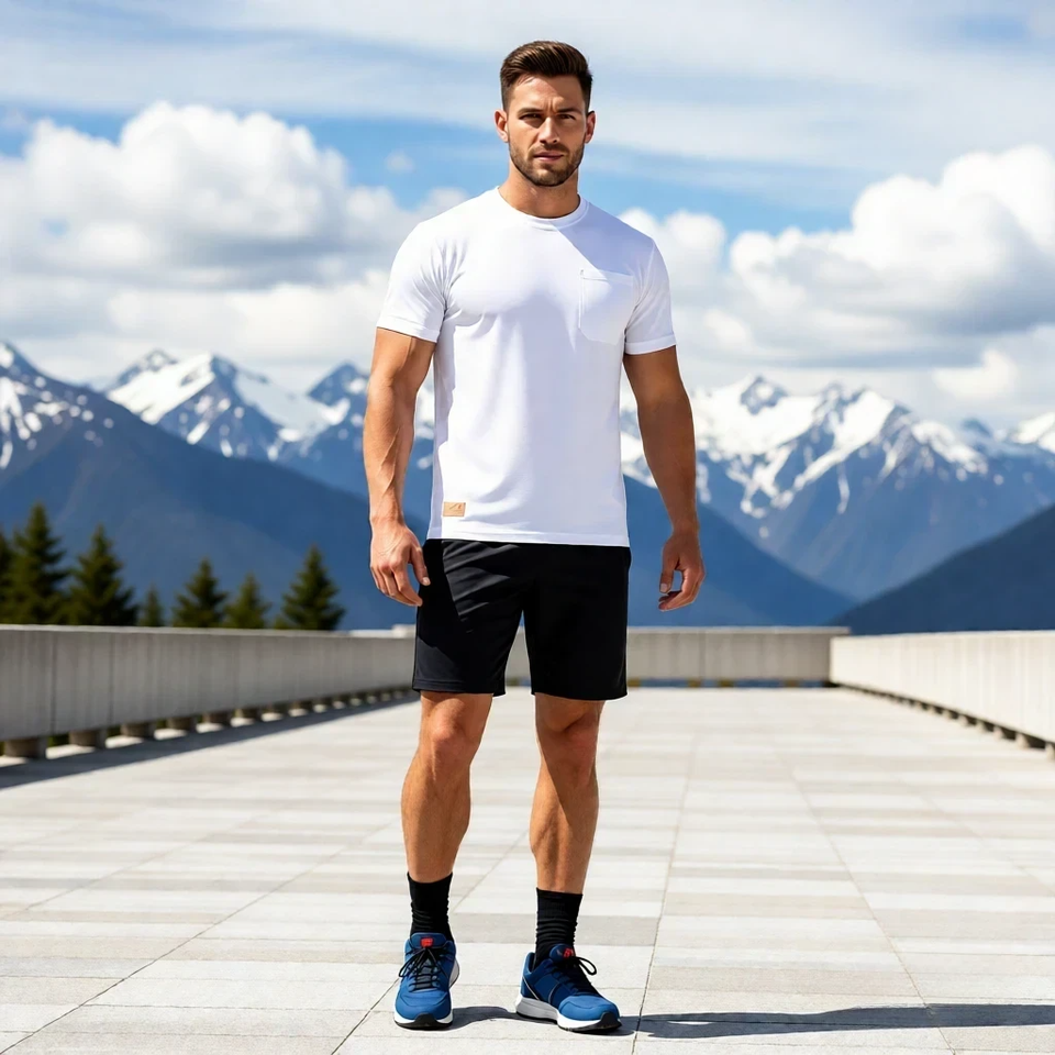 เสื้อยืดผู้ชายสไตล์สปอร์ต ผสมโพลีเอสเตอร์และสแปนเด็กซ์ ยืดได้ 4 ทิศทาง แห้งเร็ว ระบายอากาศดี เหมาะสำหรับออกกำลังกาย วิ่ง และเล่นกีฬา