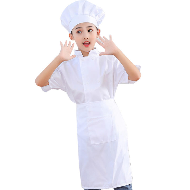 ชุดเชฟสำหรับเด็กใส่ได้ทั้งชายและหญิงเสื้อแจ็กเก็ตสำหรับอบหมวกผ้ากันเปื้อนสำหรับเชฟ