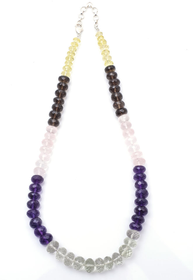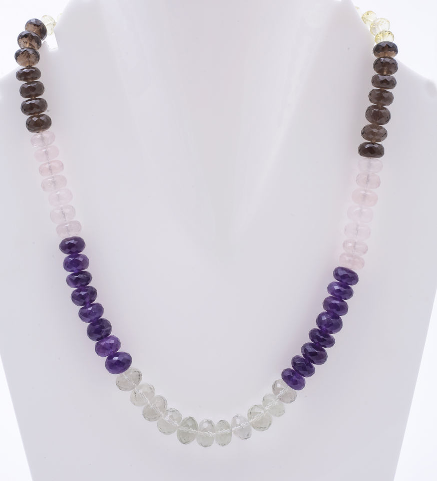 สร้อยคอลูกปัดโรสควอตซ์ อเมทิสต์ และสีเขียว