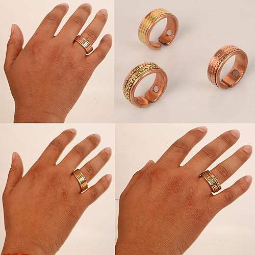 แหวนแต่งงานสไตล์คลาสสิกยูนิเซ็กซ์ทำมือโดยช่างฝีมือชาวอินเดียทนทานทองแดงบริสุทธิ์และแม่เหล็กทองเหลืองของขวัญที่สมบูรณ์แบบ