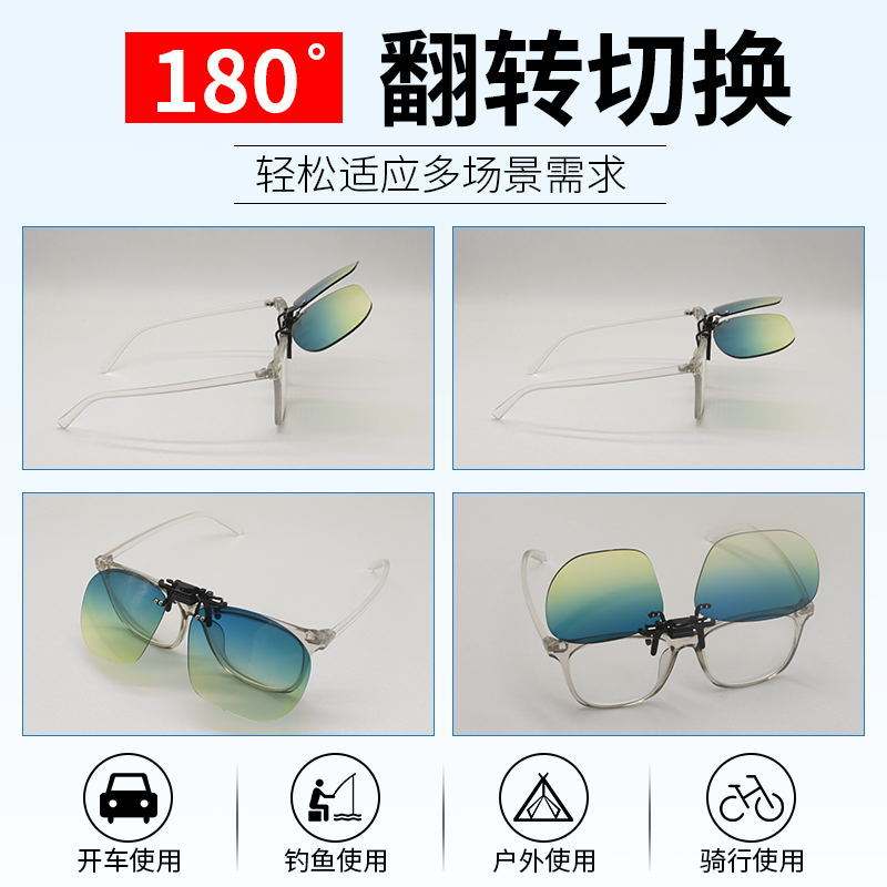 แว่นกันแดดแบบคลิปออนสำหรับทุกเพศ เลนส์ PC ป้องกันรังสียูวี 400 มองเห็นได้ในเวลากลางคืน เหมาะสำหรับตกปลา ปั่นจักรยาน ขับรถ ใช้ได้ทั้งกลางวันและกลางคืน กรอบสีดำ