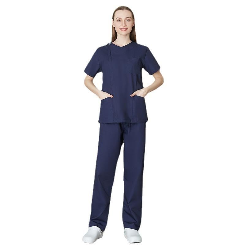ชุดสครับผ้าฝ้ายใส่สบายสำหรับทุกเพศ เสื้อและกางเกงผ้าทอพร้อมระบบตรวจจับเข็ม สำหรับชุดยูนิฟอร์มโรงพยาบาล ใช้ได้ทุกวัน