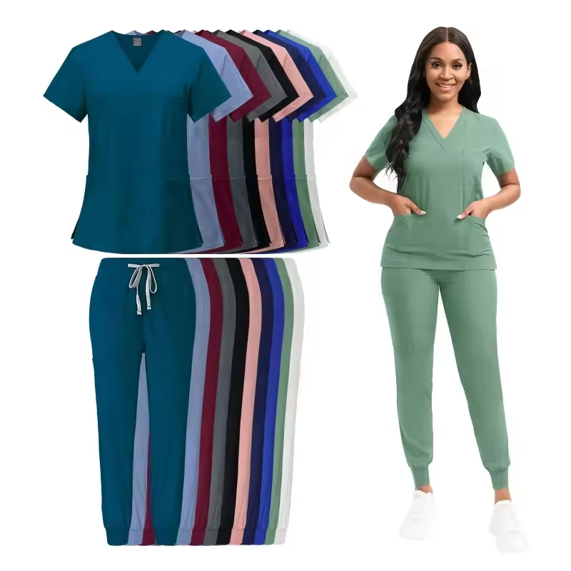 ชุดพยาบาลใส่ได้ทั้งชายและหญิงชุดเสื้อขัดคอวีแบบนุ่มพิมพ์ลายเครื่องแบบร้านเสริมสวยเครื่องแบบยืดได้ทั้งสองแบบ