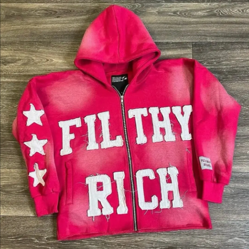 เสื้อฮู้ดผ้าคอตตอนพิมพ์ลายกรดเทอร์รี่ซักได้ใส่ได้ทั้งชายและหญิงมีฮู้ดผ้าเทอร์รี่แฟชั่นใหม่ประดับพลอยเทียม