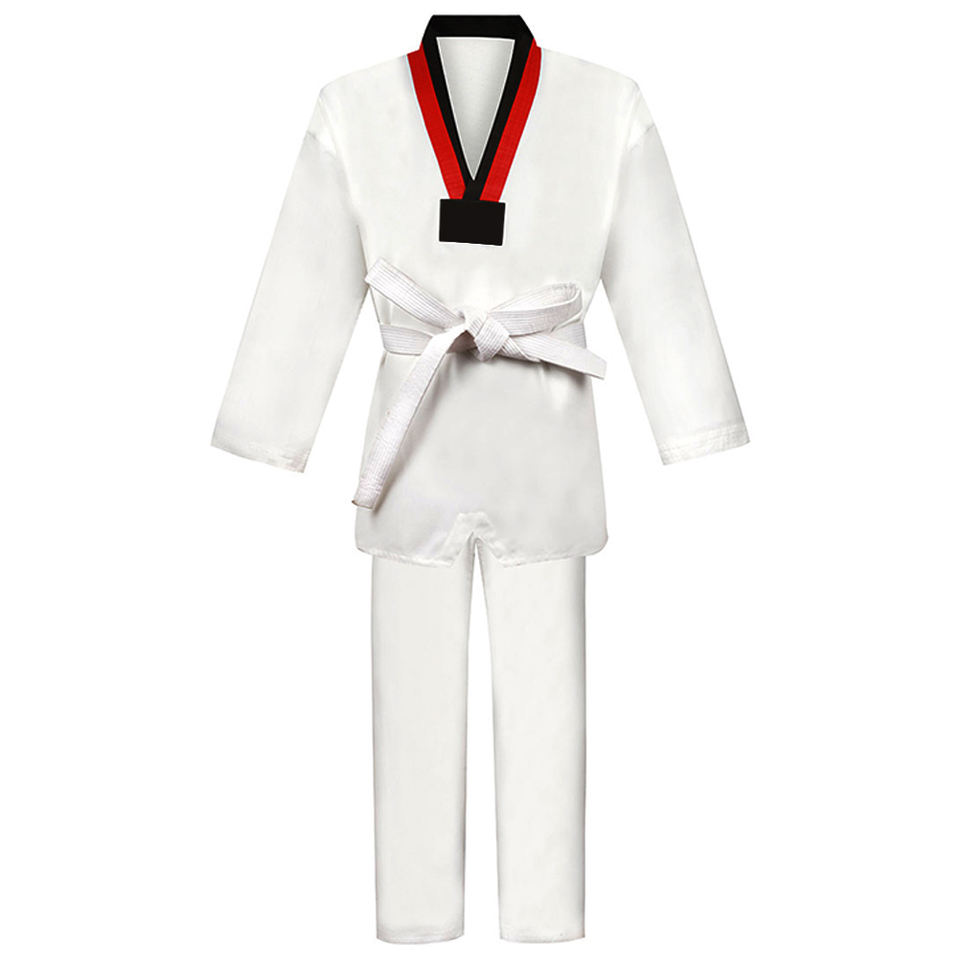 ชุดศิลปะการป้องกันตัวทำจากผ้าฝ้ายโพลีเอสเตอร์ใช้ได้ทั้งชายและหญิงชุดกีฬาโลโก้แบบปรับแต่งได้สำหรับผู้ใหญ่สำหรับคาราเต้เทควันโดยูโด