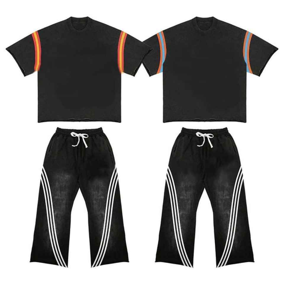 ชุดวอร์มสองชิ้นสำหรับทุกเพศผ้าฝ้ายพร้อมเสื้อยืดกราฟิกและกางเกงเข้าชุดสำหรับกีฬายิมท่องเที่ยวและชุดลำลองทุกวัน