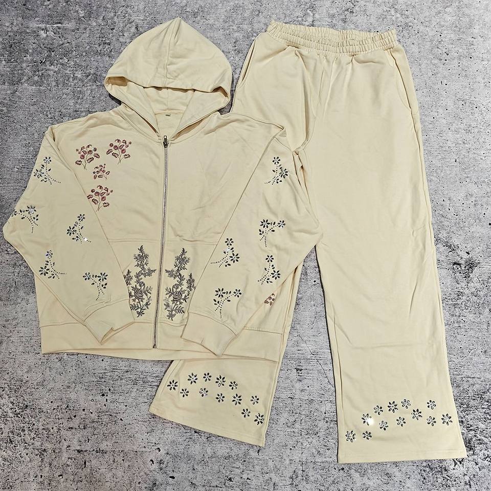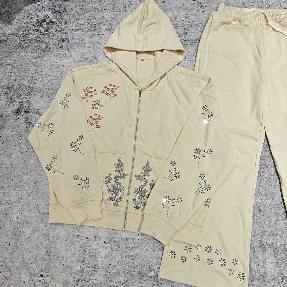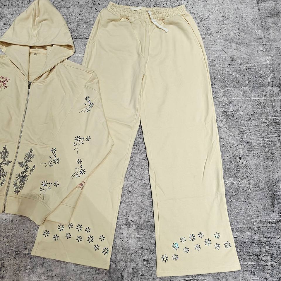 ชุดวอร์มลำลองสำหรับฤดูหนาว ประดับคริสตัลและกลิตเตอร์ สไตล์สปอร์ต ผ้าฝ้าย 100% ระบายอากาศดี ขายส่ง ดีไซน์ใหม่