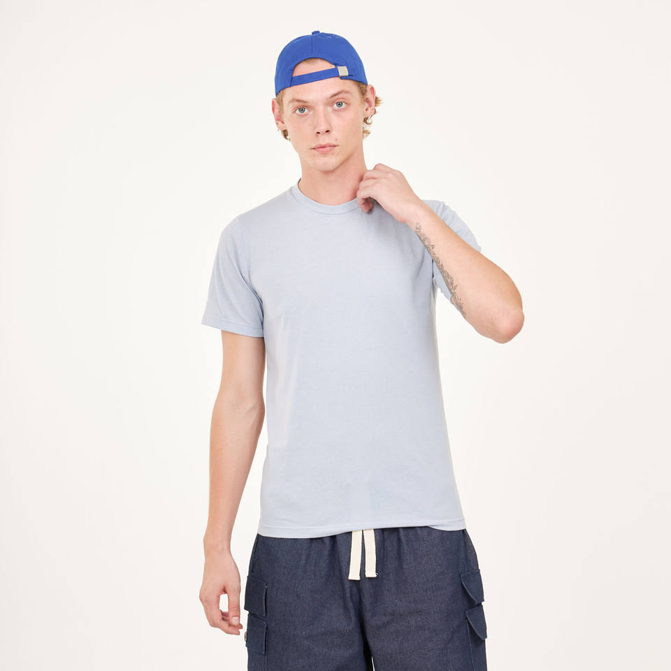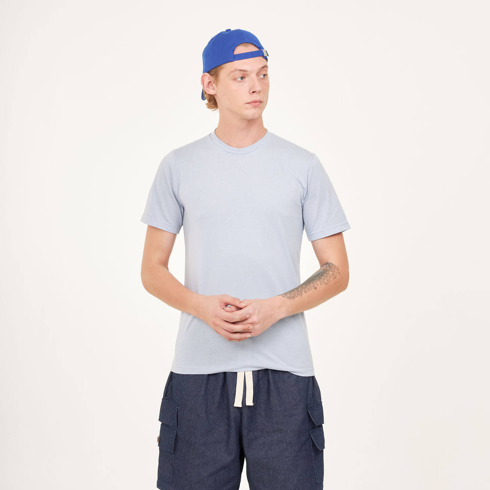 เสื้อเจอร์ซีย์สำหรับทุกเพศเสื้อยืดสีฟ้าฟ้าฟ้าเสื้อยืดลำลองแขนสั้นพอดีตัวคอวี/คอกลมพิมพ์ลายประเทศไทย
