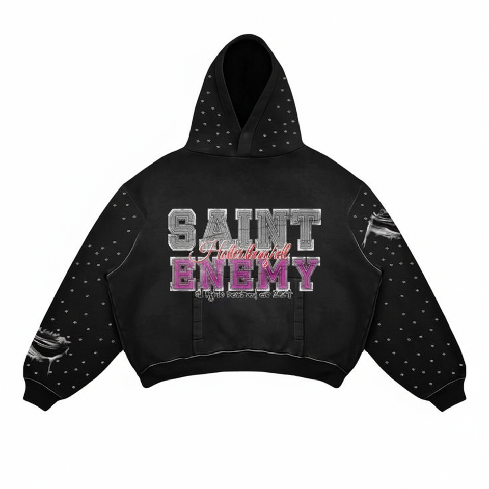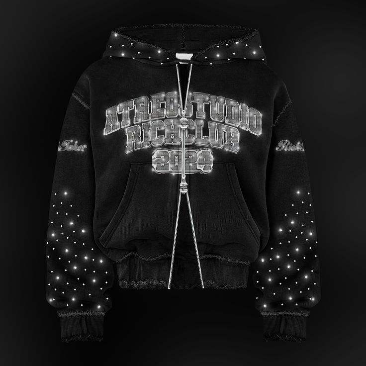 เสื้อฮู้ดปักลายกรดซักได้ทั้งชายและหญิงมีซิปเสื้อสวมหัวทรงโอเวอร์ไซส์พิมพ์พลอยเทียมเป็นมิตรต่อสิ่งแวดล้อมระบายอากาศ