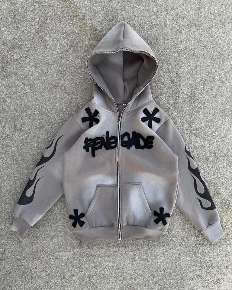 เสื้อสวมหัวใส่ได้ทั้งชายและหญิงเสื้อมีฮู้ดผ้าเทอร์รี่ปักด้วยกรดซีดจาง