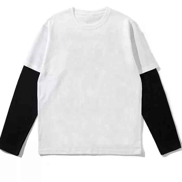 เสื้อยืดแขนยาวสองชั้นแบบปรับแต่งได้สำหรับทุกเพศดีไซน์แบบ2-in-1ทำจากวัสดุโพลีเอสเตอร์/ คอตตอน