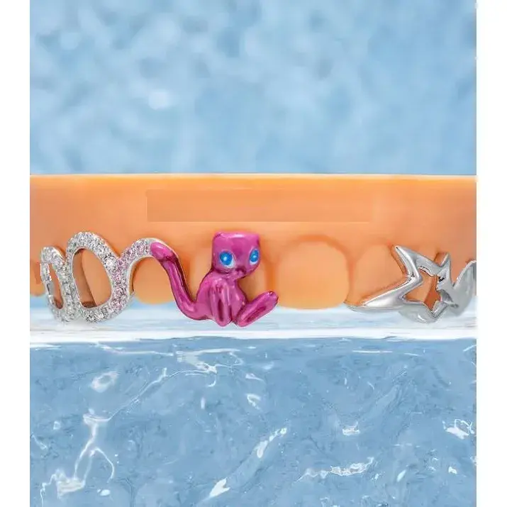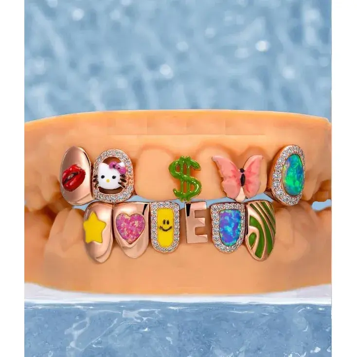 กริลล์ซแบบเต็มหน้า ปรับแต่งได้ สีสันตามสั่ง สำหรับทุกเพศ ตัวล็อคแบบกล่องเงินแท้ 925 พร้อมตัวป้องกันใบหน้า ประดับเพชรทรง Emerald Cut VVS