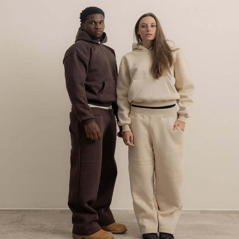 Unisex Custom Logo French Terry Tracksuit Set 100% Cotton Hoodie and Sweatpants Set for Women Men Plain Boxy Sweatsuit Custom