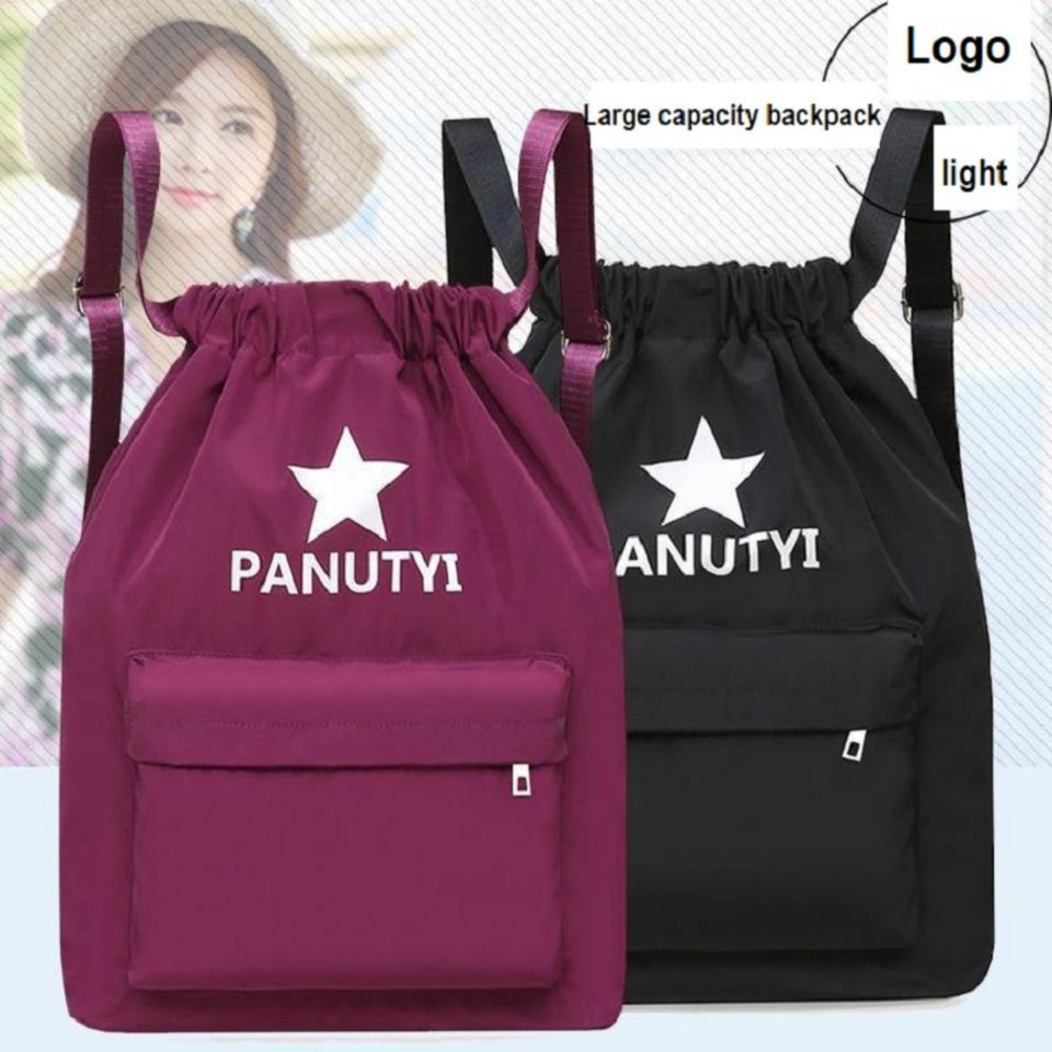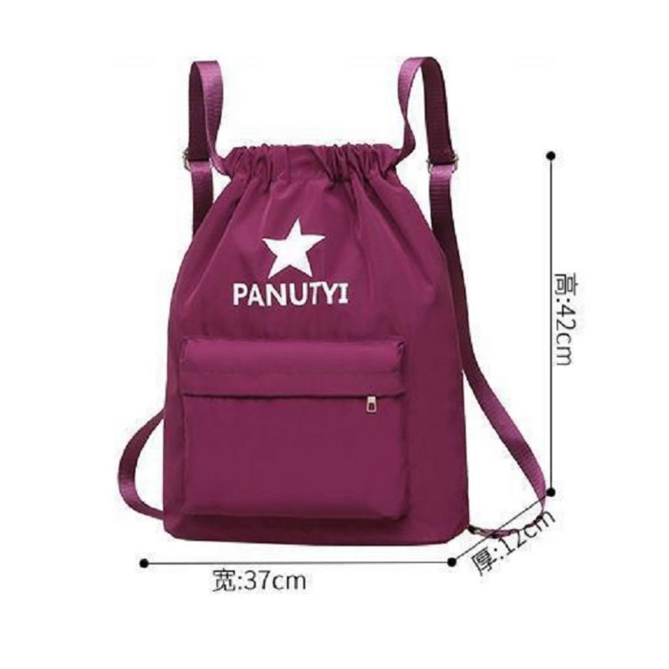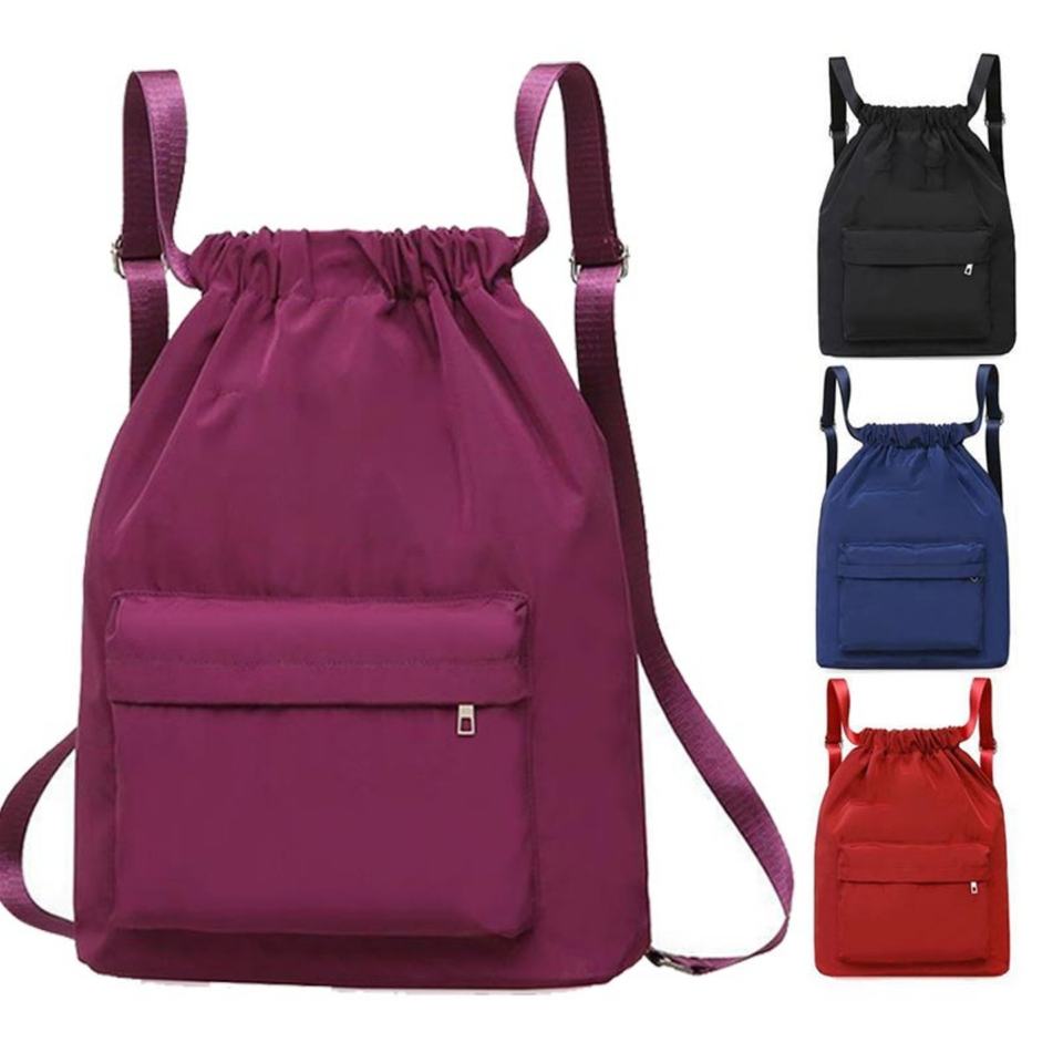 กระเป๋าเป้สะพายหลังกีฬาออกกำลังกายแบบ unisex สกรีนโลโก้ได้ กันน้ำ สำหรับกิจกรรมกลางแจ้ง แบบเชือกรูด ป้องกันการโจรกรรม วัสดุโพลีเอสเตอร์เรียบๆ สำหรับงานโปรโมชั่น