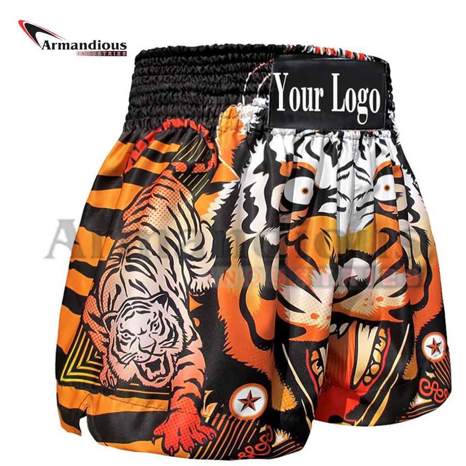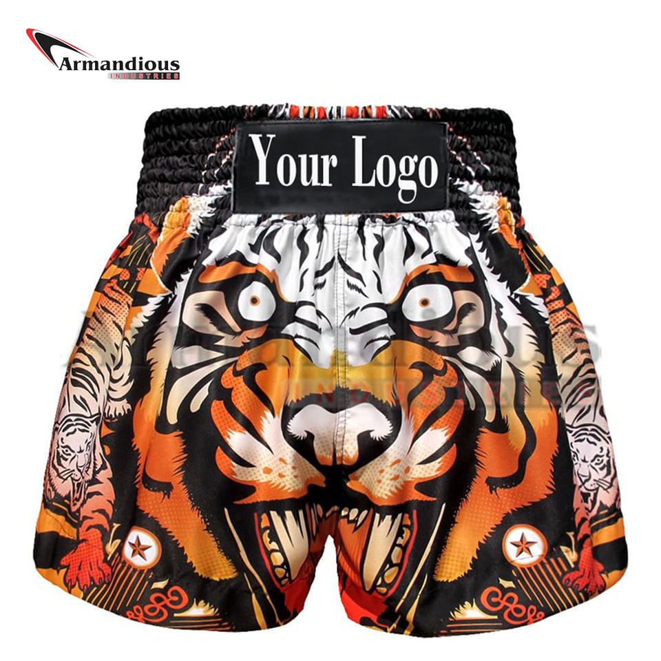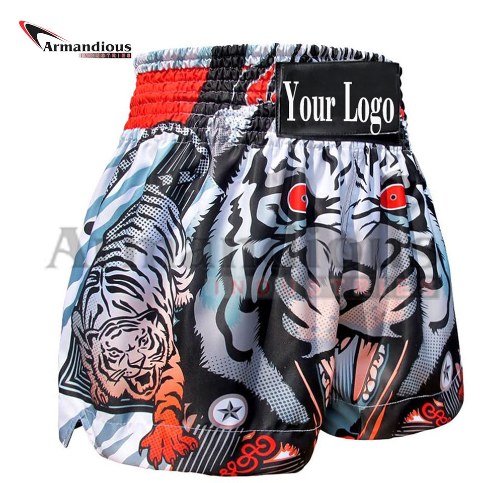 สำหรับทุกเพศกางเกงขาสั้นสไตล์ต่อสู้มวยไทยพิมพ์ลายโลโก้ออกแบบได้ตามต้องการ