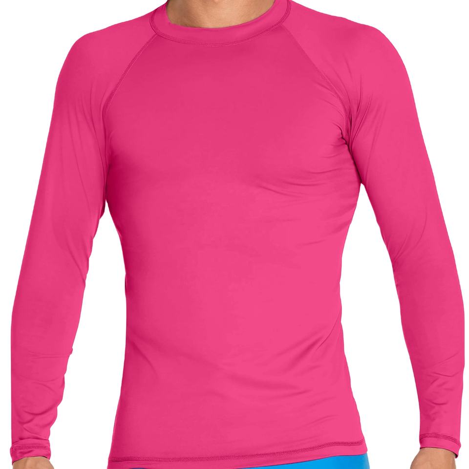 ชุดป้องกัน UV สำหรับผู้ชายและผู้หญิงชุดป้องกันผดผื่นแขนยาวระบายอากาศได้ดีสีชมพู