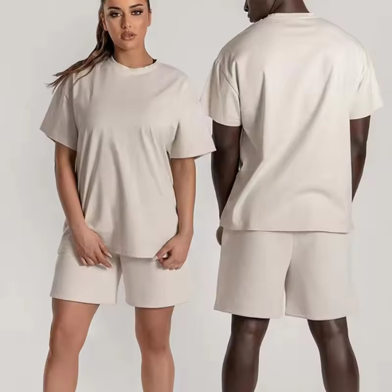 ชุดวอร์ม2ชิ้นสำหรับผู้ชายใส่ได้ทั้งชายและหญิงชุดวอร์มแขนสั้นพิมพ์ลายสำหรับฤดูร้อน
