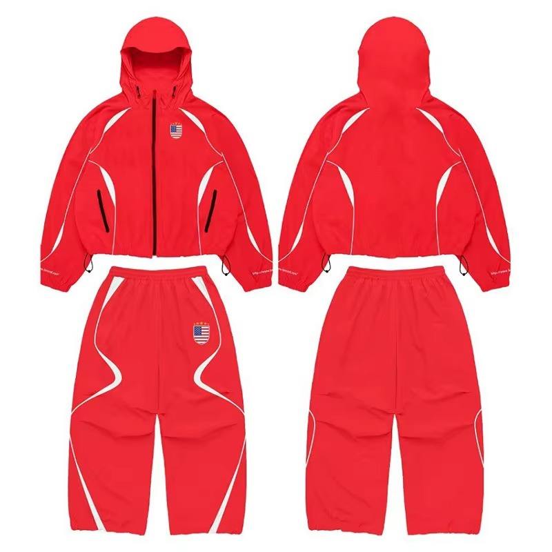 ชุดเซ็ตแทรคสูทไนลอนคุณภาพดีแบบยูนิเซ็กซ์ กันลม ระบายอากาศได้ดี เป็นมิตรกับสิ่งแวดล้อม แจ็คเก็ตแบบซิป มีฮู้ด กางเกงขายาว ดีไซน์เรียบหรูทันสมัย