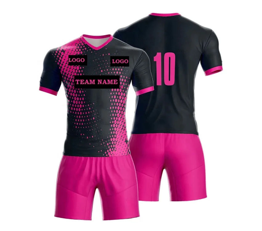ชุดฟุตบอลสีชมพูแบบยูนิเซ็กซ์สั่งทำพิเศษ คุณภาพสูง พร้อมชุดยูนิฟอร์มปักลายมาตรฐาน ชุดฟุตบอลสีชมพูเรียบแบบซับลิเมชั่น
