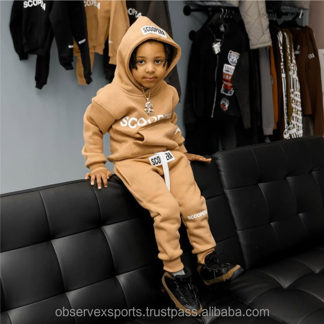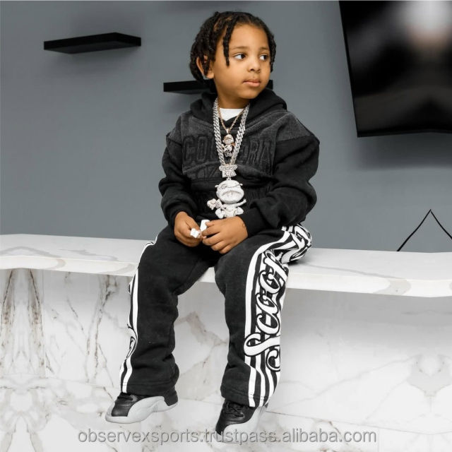 ชุดเสื้อผ้าสตรีทแวร์ฤดูหนาวแบบยูนิเซ็กซ์สั่งทำพิเศษ เนื้อผ้าหนา ชุดเสื้อฮู้ดและกางเกงจ็อกเกอร์ผ้าฝ้าย 100% ลายพิมพ์