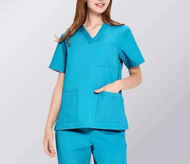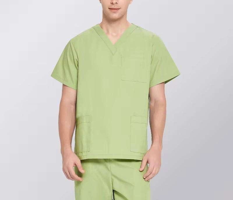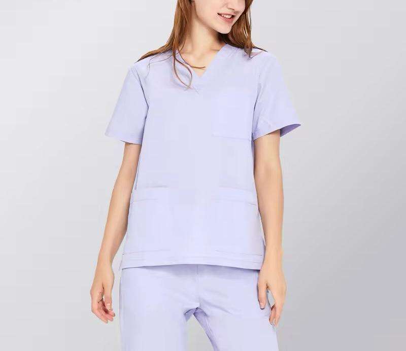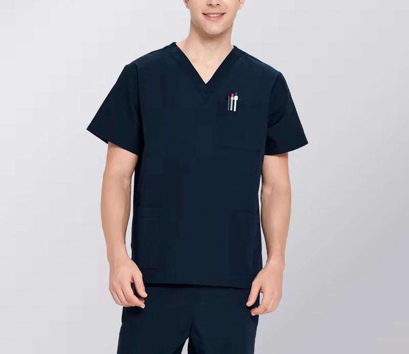 ชุดผ้าโพลีเอสเตอร์ผ้าเรยอนสำหรับโรงพยาบาลชุดสครับขัดฟันแขนสั้นแบบสั่งทำได้ทั้งชายและหญิง
