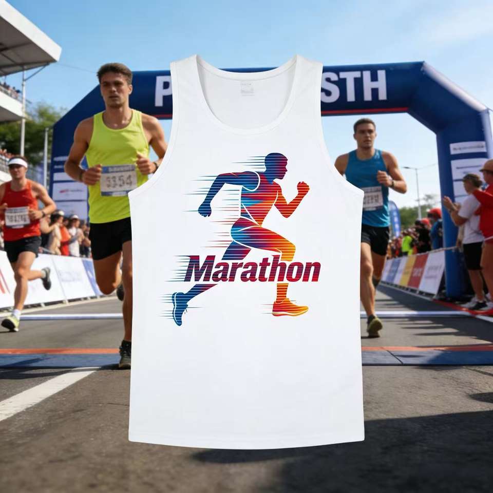 เสื้อกล้ามวิ่งมาราธอนแบบยูนิเซ็กซ์ ผ้าตาข่ายระบายอากาศ โพลีเอสเตอร์ 100% ป้องกันรังสียูวี สำหรับฤดูร้อน สกรีนโลโก้ตามสั่ง