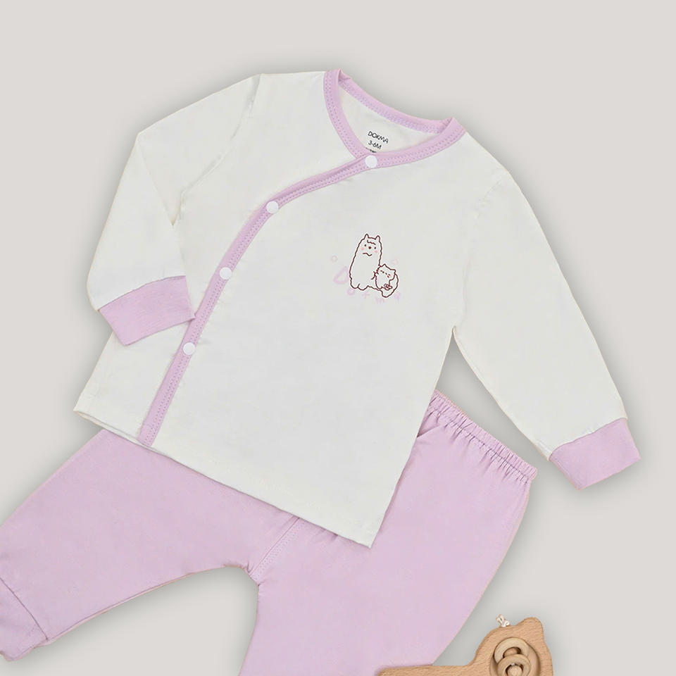 ชุดเด็กน่ารักแบบยูนิเซ็กซ์ ALB06 แขนยาวติดกระดุมด้านข้าง ผ้าถักเนื้อนุ่มระบายอากาศได้ดี ผลิตจากใยไผ่ 95% และสแปนเด็กซ์ 5% ลายการ์ตูน