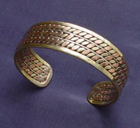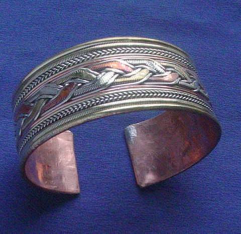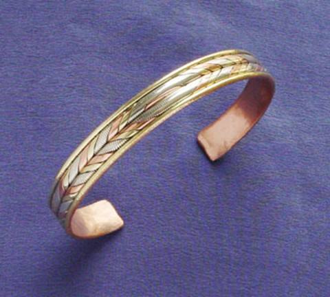 Unisex Cute Ethnic Copper Brass Jade Diamond Pearl Buddhist Peace Flower Arrow Number Party Gift 3 Metals Twisted Healing Bangle