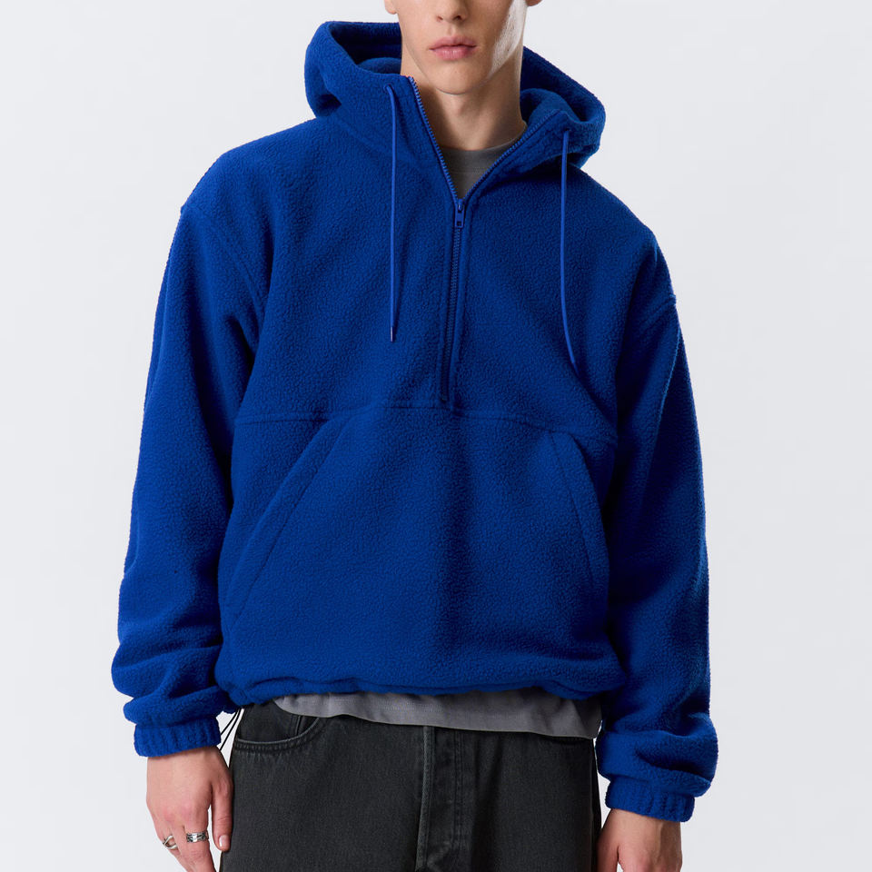 เสื้อฮู้ดดี้สีน้ำเงินเข้มแบบยูนิเซ็กซ์ ผ้าฟลีซเนื้อนุ่ม มีเชือกผูก ทรงโอเวอร์ไซส์ สไตล์สตรีทแวร์ ให้ความสบายในชีวิตประจำวันในเมือง