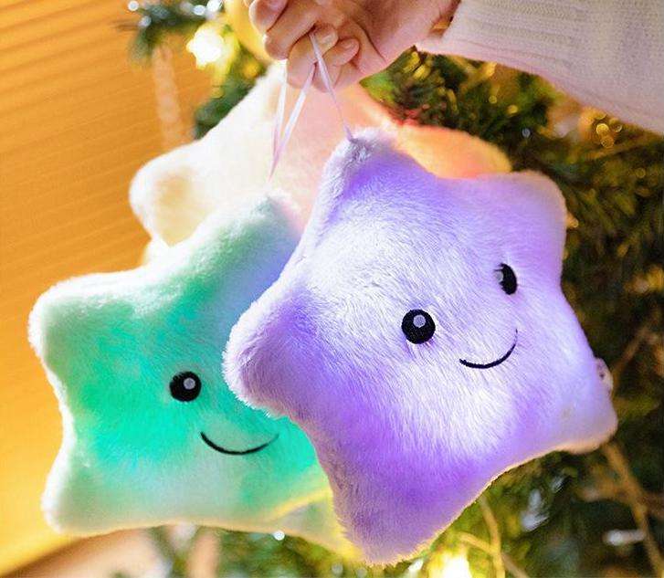 Unisex Dark Pillow Five-Pointed Star LED Glowing Soft Cotton Plush Mesh Lining Stress Relief PP Cotton Filling Cotton Fabric