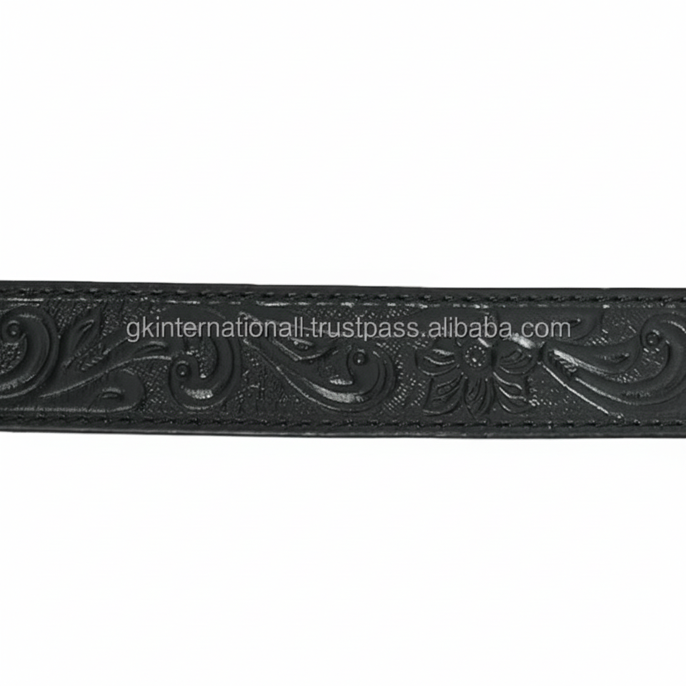 Unisex Designer Hand Carved Floral Embossed Full Grain Black Western Leather Tooling Belt for Jeans or Trouser