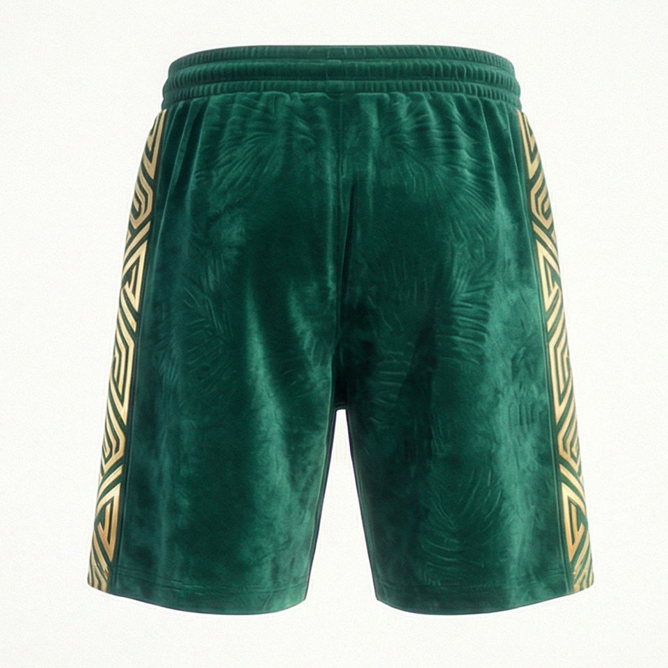 กางเกงขาสั้นผ้ากำมะหยี่ดีไซน์เนอร์สำหรับทุกเพศ พิมพ์โลโก้คริสตัล สไตล์ลำลอง ใส่สบาย ระบายอากาศได้ดี เป็นมิตรกับสิ่งแวดล้อม ทรงปกติ รุ่น Maluza