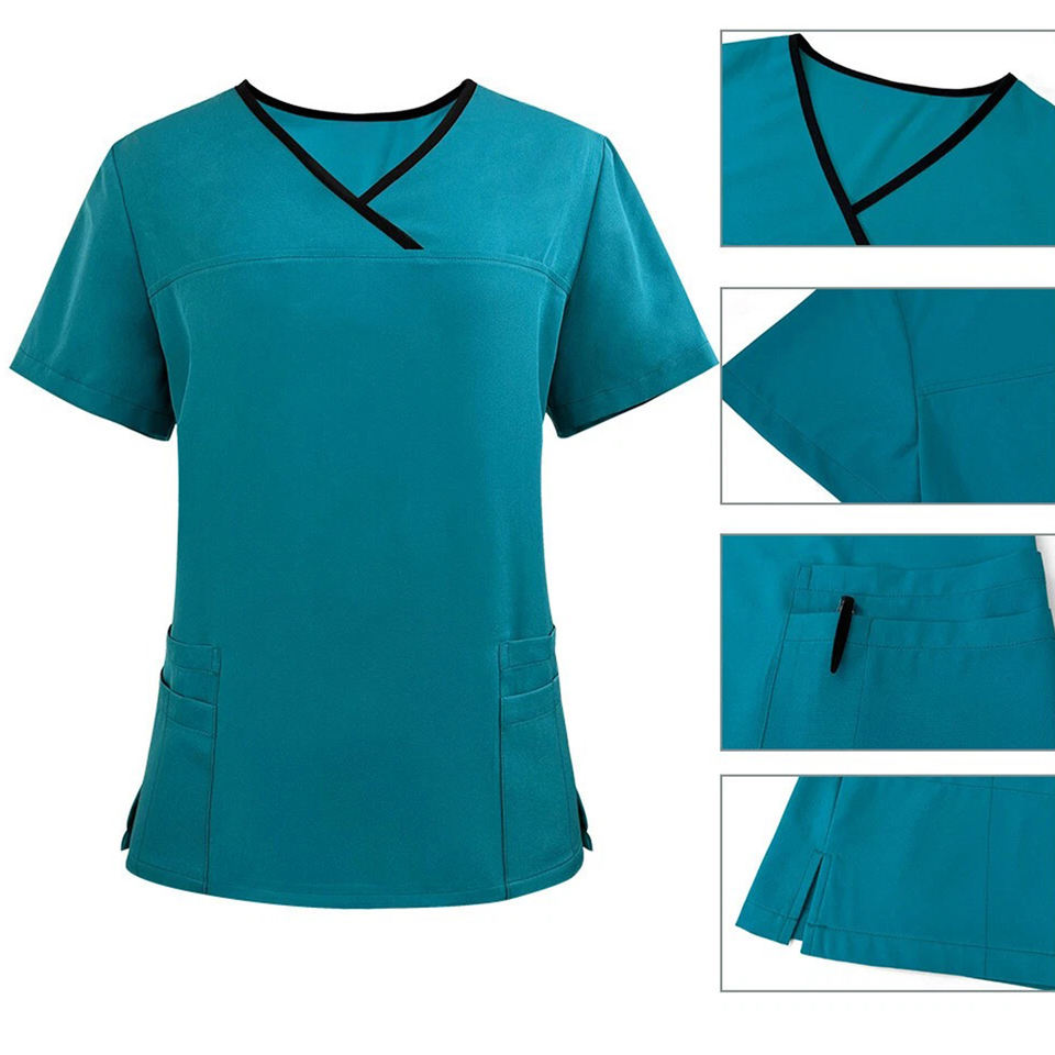 ชุดยูนิเซ็กซ์ดีไซน์โบว์สวยหรูสำหรับฤดูร้อน เหมาะสำหรับสปา ซาลอน ช่างทำเล็บ พยาบาล ผ้าคอตตอนผสมโพลีเอสเตอร์ คุณภาพสูง ปรับแต่งได้ ชุดสครับสำหรับโรงพยาบาล