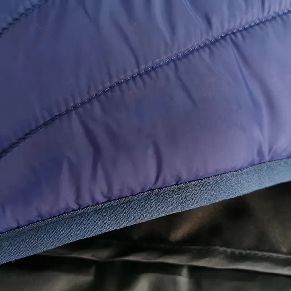แจ็กเก็ตไนลอนปักลายสำหรับผู้ชายและผู้หญิงแจ็กเก็ตผ้าโพลีเอสเตอร์โทนคู่สีฟ้าประสิทธิภาพพร้อมใช้งานระบายอากาศและให้ความอบอุ่นสบายสูงสุด