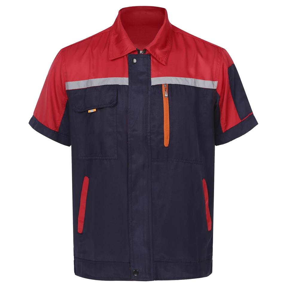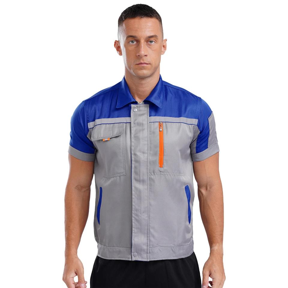 เสื้อแจ็กเก็ตผ้าฝ้ายระบายอากาศได้ดีแขนสั้นมีซิปเครื่องแบบช่างสำหรับทุกเพศ