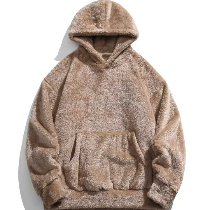 เสื้อฮู้ดขนฟูแบบยูนิเซ็กซ์ ผ้ากำมะหยี่นุ่มสีน้ำตาล ขนเทียม ทรงโอเวอร์ไซส์ ปักโลโก้ ไซส์ XL