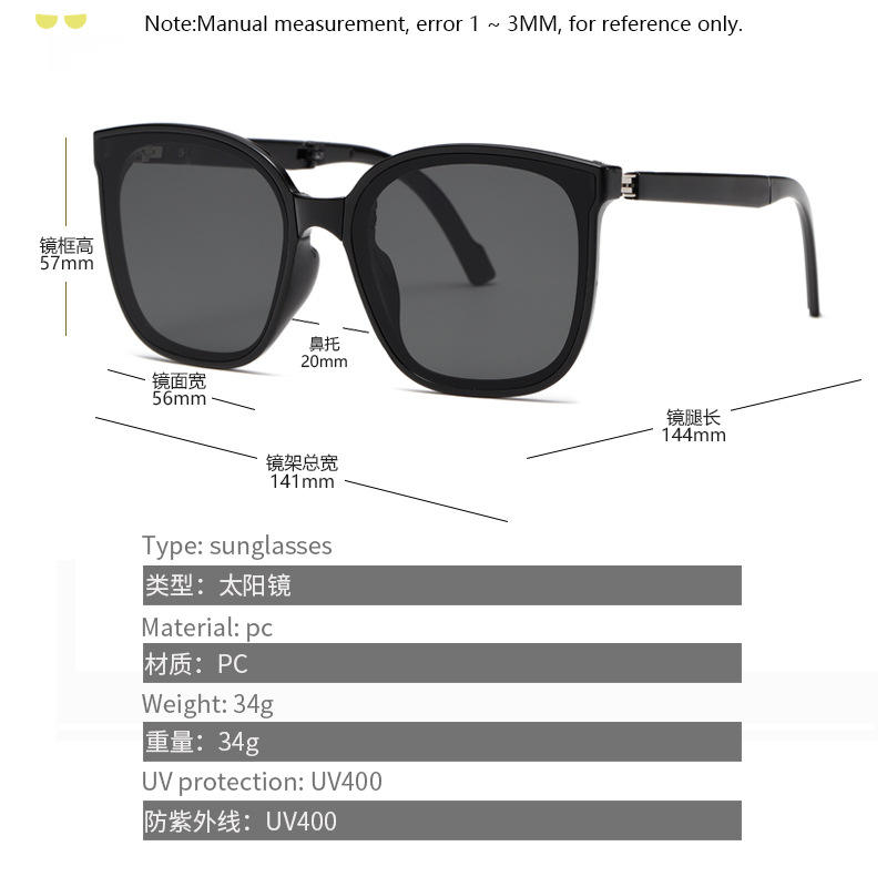 แว่นกันแดดแบบพับได้สำหรับทุกเพศกรอบพีซี ยูวี 400 ป้องกันรังสี UV400 รูปทรงสี่เหลี่ยมประเภท 3 สำหรับผู้ชายและผู้หญิง
