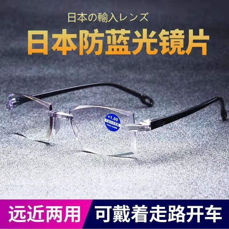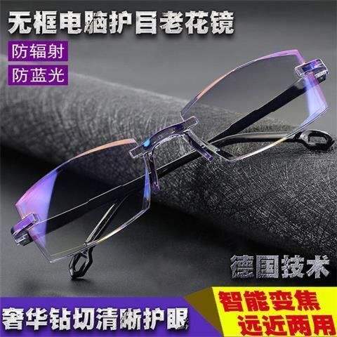 แว่นตาอ่านหนังสือไร้กรอบสำหรับทุกเพศ เลนส์เรซิ่นสีดำ ป้องกันแสงสีฟ้า วิสัยทัศน์สองชั้น ฤดูร้อน 2021