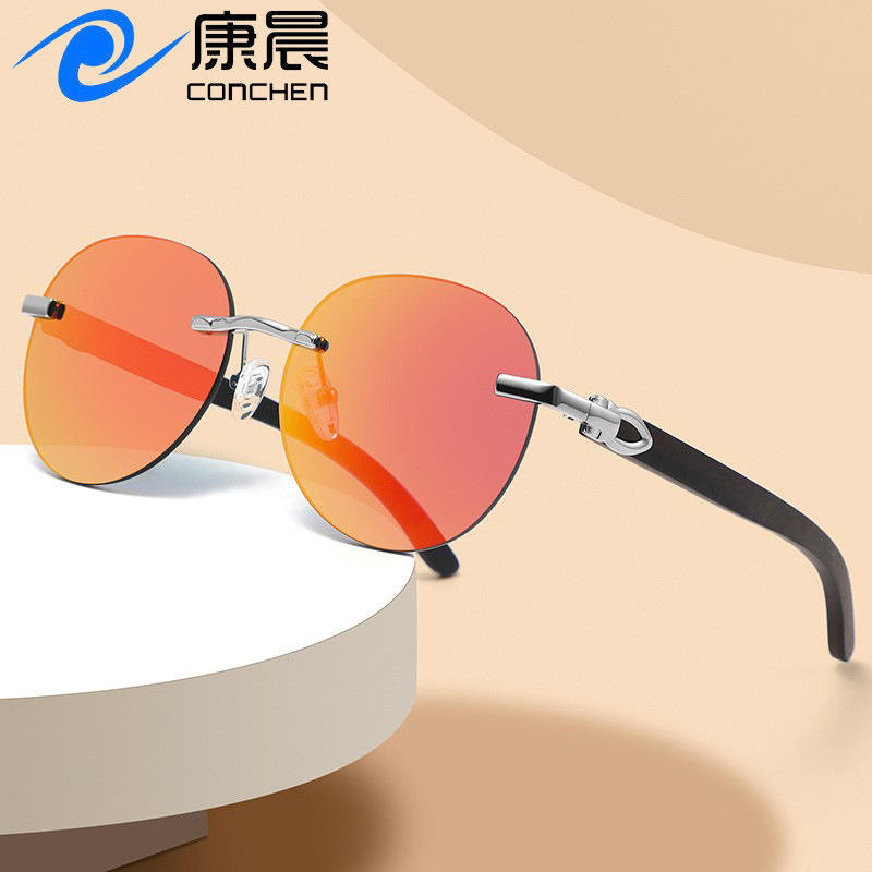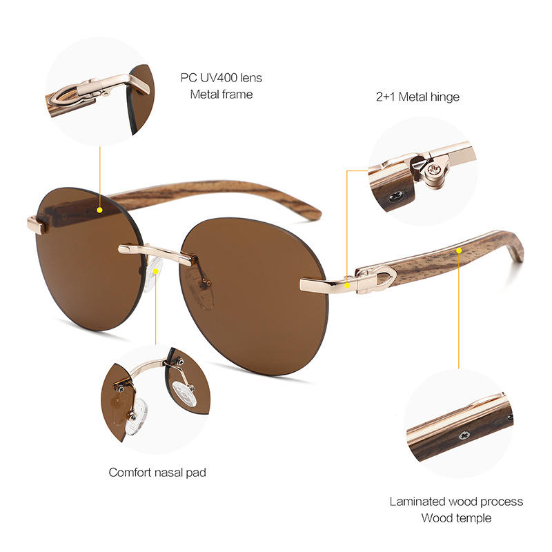 แว่นกันแดดไร้กรอบสำหรับทุกเพศ เลนส์พีซีสีดำ ป้องกันรังสียูวี 400 สำหรับกันแดดและแฟชั่นการเดินทาง