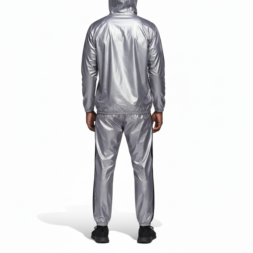 ชุดซาวน่าแบบเต็มตัวสีเงินมีฮู้ด สำหรับทุกเพศ ป้องกันแบคทีเรีย ระบายอากาศได้ดี เหมาะสำหรับออกกำลังกายที่บ้าน ช่วยลดน้ำหนัก