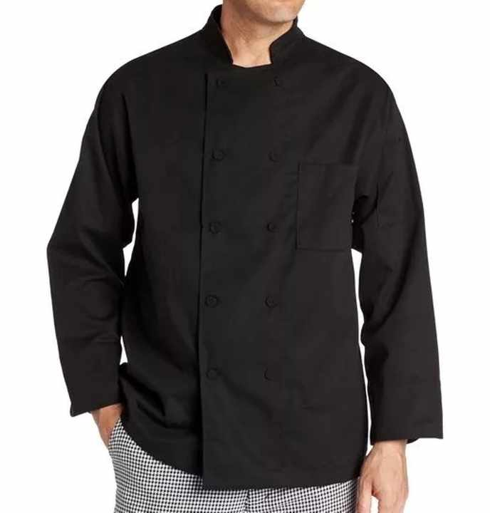 เสื้อแจ็กเก็ตสำหรับเชฟผ้าโพลีคอตตอนแขนยาวทุกเพศเครื่องแบบห้องครัวกระดุมสองแถวสำหรับร้านอาหารบาร์ขายส่ง