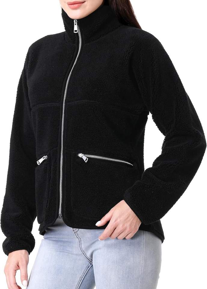 แจ็คเก็ตขนแกะขนฟูยูนิเซ็กส์สำหรับผู้หญิงเสื้อโค้ทเชอร์ปาแบบรูดซิปมีกระเป๋าใส่ลำลอง