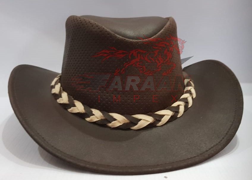 หมวกคาวบอยถักหนังแท้แบบเต็มตัวสำหรับชายและหญิงหมวกวินเทจสไตล์ออสเตรเลียสำหรับการท่องเที่ยวตกปลาการผจญภัยกลางแจ้ง