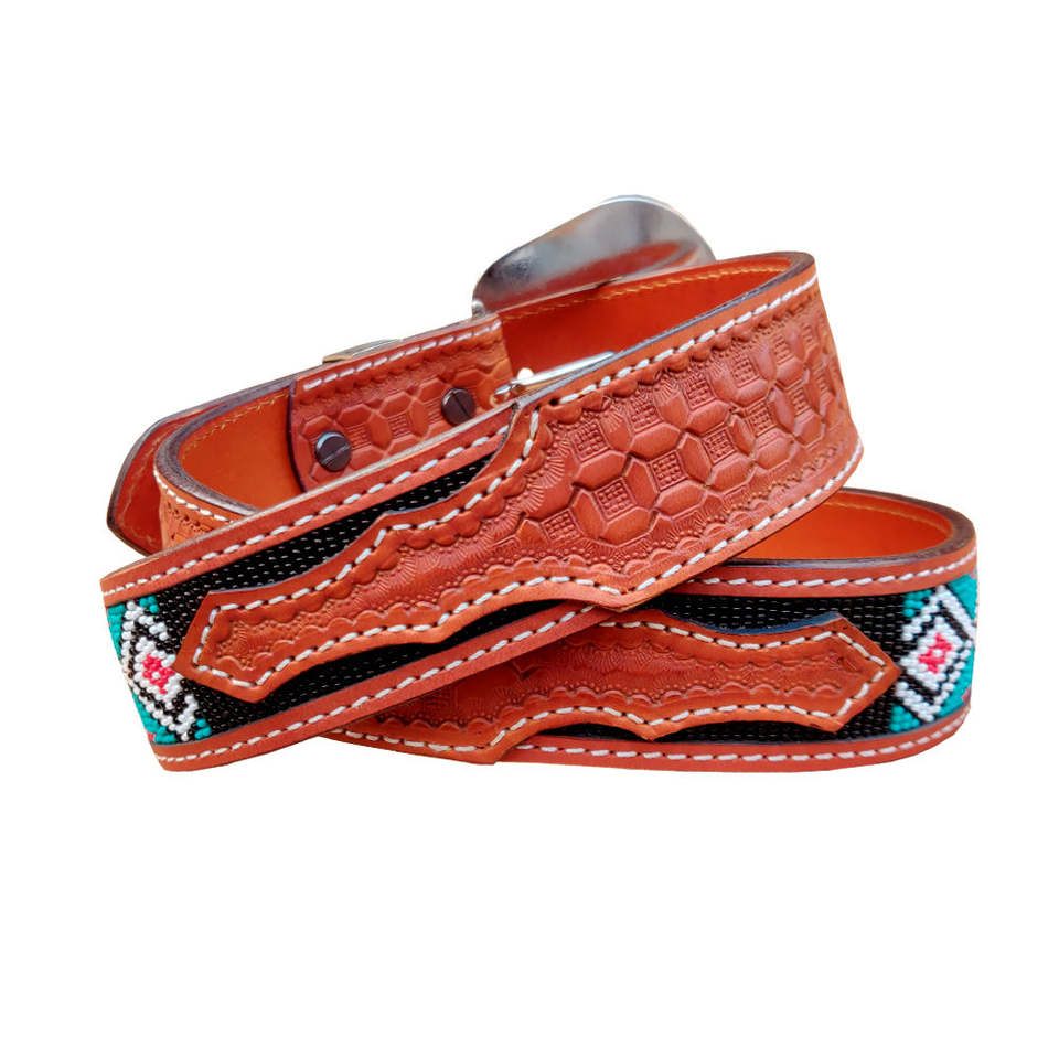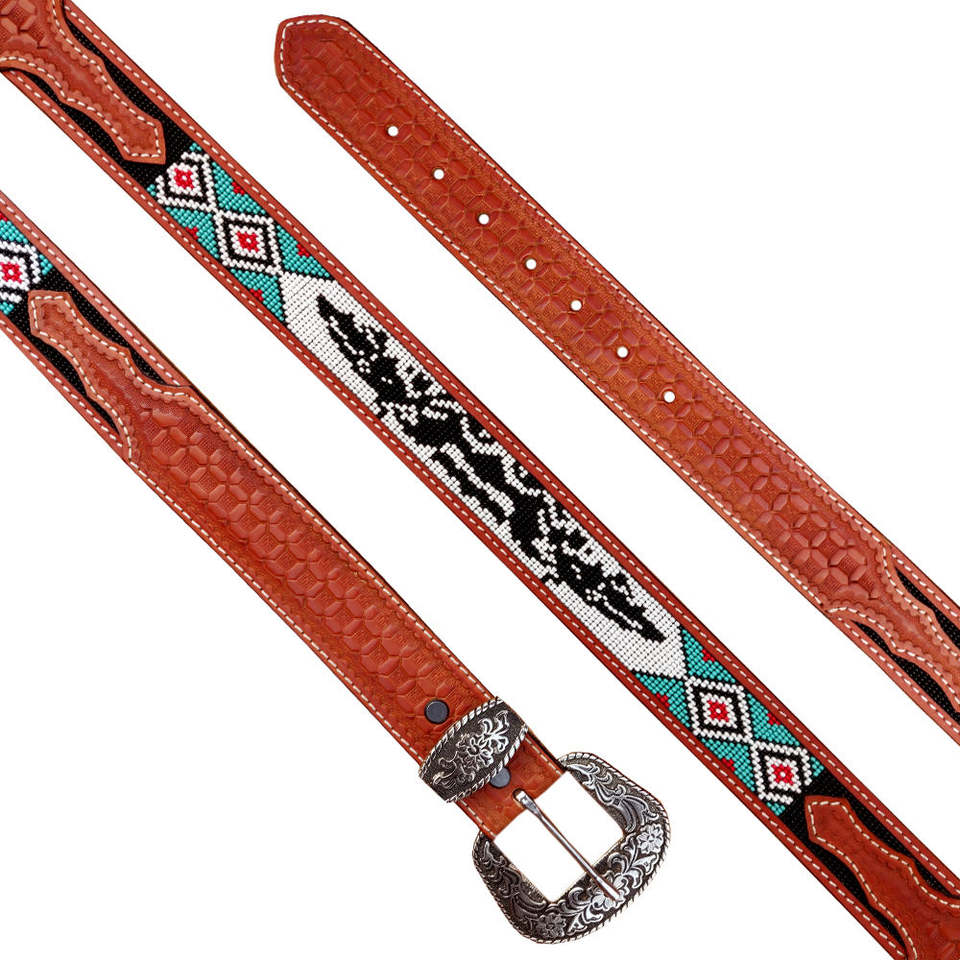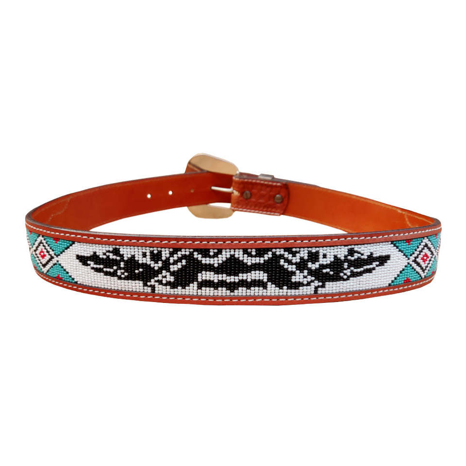 เข็มขัดหนังแท้แบบยูนิเซ็กซ์ ทนทาน ดีไซน์แบบตะวันตกประดับลูกปัด ดีไซน์ม้าวินเทจหลากสีสัน ลุคคลาสสิกแบบใหม่