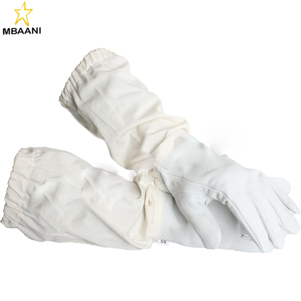 ถุงมือเลี้ยงผึ้งหนังแพะแบบยูนิเซ็กซ์พร้อมแขนผ้าใบยาวและช่องระบายอากาศ