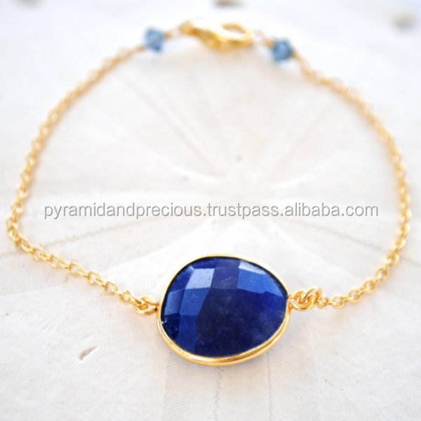 สร้อยข้อมือเงินสเตอร์ลิงชุบทองใช้ได้ทั้งชายและหญิงพร้อมอัญมณีลาพิส Lazuli สำหรับงานแต่งงานงานครบรอบ
